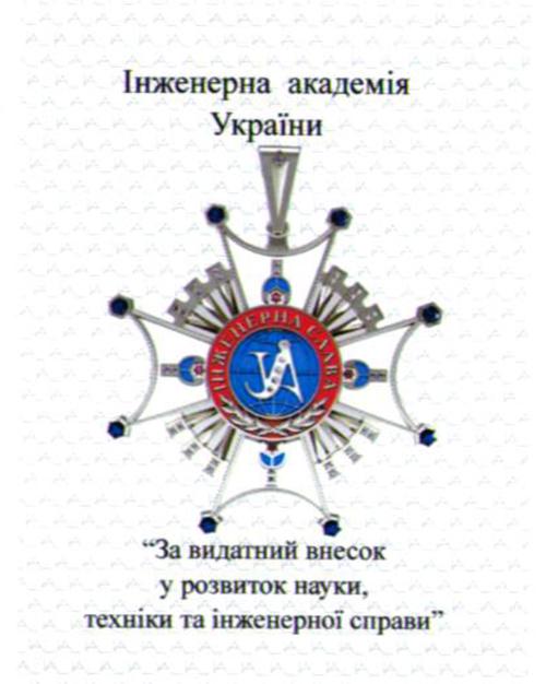 为感谢杰出工程师的卓越贡献,对其在工程中的奉献精神以及专业水平肯定,表彰在创造新技术、专利和专有技术以及解决生产和重大工程项目开发中问题的杰出成就,在乌克兰国家工程院三名院士以上共同提名的条件下,进行开放评审和匿名投票后,授予以下奖项:
